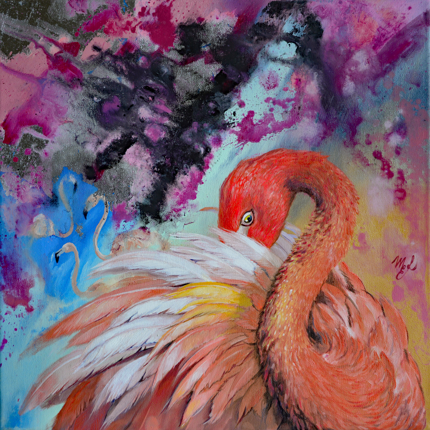 Un’improvvisa ispirazione rosa, aggiungi alcune influenze della Street Art con alcuni dettagli astratti e questa opera d’arte vivace prende forma! I viaggi in giro per il mondo ispirano l’immaginazione dell’artista e questa volta sono stati i fenicotteri di Atacama, in Cile, a lasciare un segno indelebile nella sua produzione. Lascia che quest’opera d’arte sia un promemoria delle meraviglie del mondo, un tocco di delizia nel tuo spazio che mantiene viva la tua fantasia.